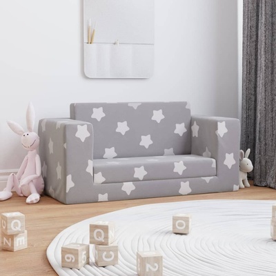 FIMEX Rozkládací dětská pohovka s bobkem a polštářkem Kolečka a Kočičky Šedá