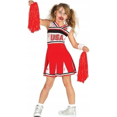 KOSTÝM ROZTLESKÁVAČKY ZOMBIE 128 Šaty bez rukávů, obléká se přes hlavu. Na hrudi je nápis „USA“. V pase je pásek zavazovaný vzadu. Kostým je na různých místech potřísněné...