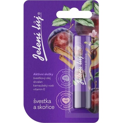 Balzám na rty JELENÍ LŮJ v blistru Švestka a skořice přináší chuť tradičního podzimního plodu ve spojení se skořicí. Připomíná švestkový crumble nebo povidla, barevnou...