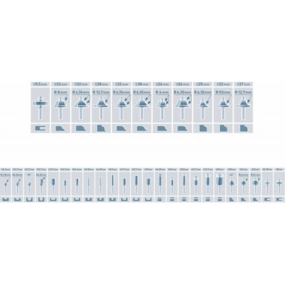 Frézy tvarové do dřeva s SK plátky, sada 35ks, v kovovém kufru, SK, EXTOL PREMIUM Hlavní technické parametry: - popis: stopka 8mm, v kovovém kufru - materiál: SK
