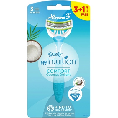 Dámská holítka Wilkinson My Intuition Sensitive Comfort Coconut Delight se 3 elastickými břity a zvlhčujícím proužkem s kokosovým olejem se postarají o dokonalé a bezchybné...
