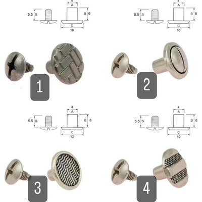 Kožená ucha na kabelky, šíře 2cm. Barva: ČERVENÁ Šroubovací nýty umožňují ucha sundat a kabelku vyprat. PŘI VOLBĚ OZDOBNÝCH NÝTŮ VYBÍREJTE VZOR 1 - 4. VYBRANÝ VZOR NAPIŠTE...