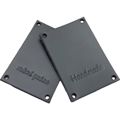 Cedulka z hovězí kůže. Logo: Handmade Ruční práce Velikost : 60x40mm Tl. kůže 2,8-3,2mm K přišití.