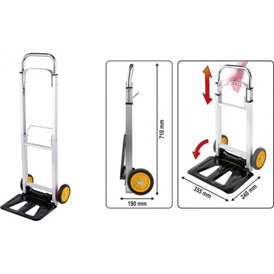 Rudl TOYA TO-78661 skládací 90kg Podrobný popis Skládací vozík s kapacitou 90kg s velkou deskou pro náklad (35,5 x 24 cm), ideální pro převážení kartonů atp. Díky jedinečnému...