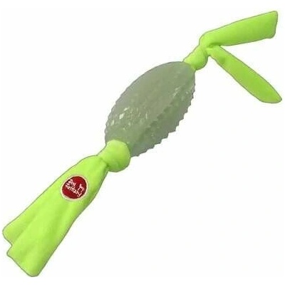 Fosforeskující rugby míček z odolné termoplastické gumy, s denta drážkami, které pejskovi přirozeně čistí zuby se šustícími uzlíky na koncích. pro házení a aportování i ve...