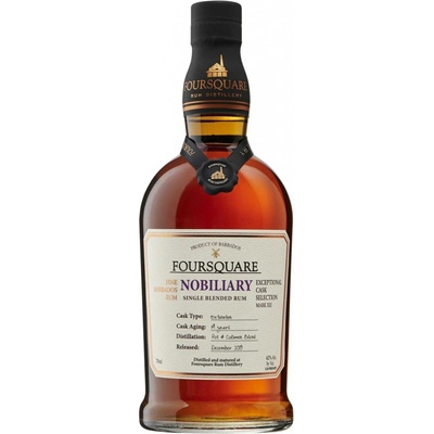 - V prosinci roku 2019 se edice Foursquare Exceptional Cask Selection rozšířila o nový rum s názvem Nobiliary, to v překladu znamená Urozený. Zrál 14 let výhradně v sudech po bourbonu a byl destilovaný z části v Pot Still-u a z části v Column Stillu. Lahvován je v...