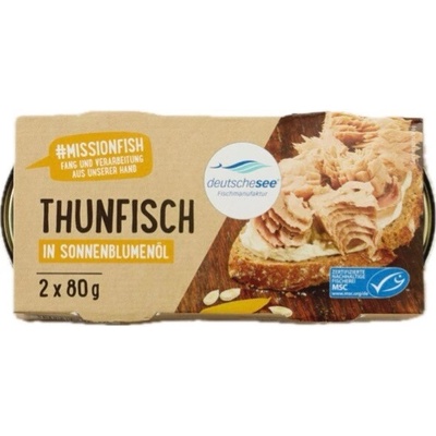 Deutsche See Tuňák ve slunečnicovém oleji 2x80g Prémiový tuňák od německé značky Deutsche See, známé pro svou špičkovou kvalitu mořských produktů. Kousky tuňáka jsou naložené...