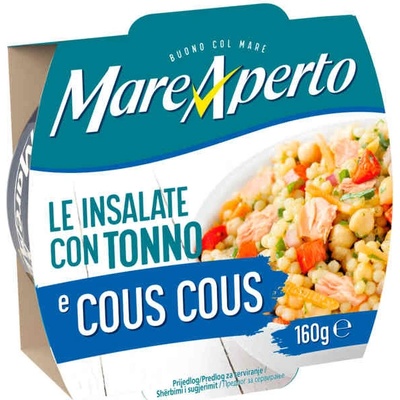 Tuňákový salát s kuskusem Mare Aperto 160g Dokonalá kombinace lahodného tuňáka, kuskusu, cizrny, zeleniny a slunečnicového oleje Vám umožní vychutnat si rychlý oběd nebo zdravou...