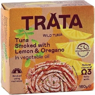 TRATA Tuňák uzený v rostlinném oleji citron-oregano 160g Konzervovaný tuňák, uzený, s příchutí citronu a oregana, v rostlinném oleji. Sterilováno. Složení: - 65 % uzený...