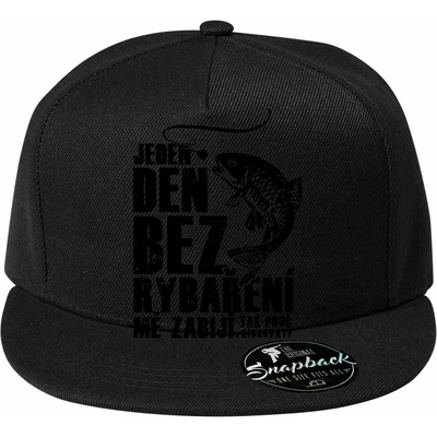 Jeden den bez rybaření mě zabíjí, tak proč riskovat. Černý tisk. V2. Tričko, mikina, kšiltovka, zástěra, tílko, hrnek, půllitr, plechový hrneček. Typ výrobku: Kšiltovka, čepice...