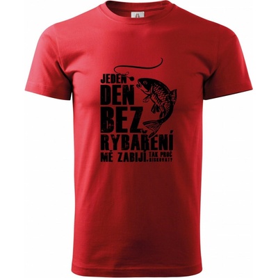 Jeden den bez rybaření mě zabíjí, tak proč riskovat. Černý tisk. V2. Tričko, mikina, kšiltovka, zástěra, tílko, hrnek, půllitr, plechový hrneček. Typ výrobku: Nejlevnější...