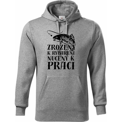 Zrozený k rybaření, nucený k práci. Černý tisk. Tričko, mikina, kšiltovka, zástěra, tílko, hrnek, půllitr, plechový hrneček. Typ výrobku: Pánská mikina s kapucí - PREMIUM ...