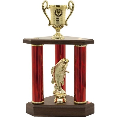 Luxusní plastová trofej na dřevěném podstavci o velikosti 38 cm. Ve spodní části trofeje je vložena soška rybaření mezi třemi tubami, ve vrchní části je vložen pohár, do...