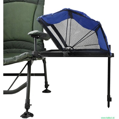 Univerzální, velký, boční, sklopný stolek. - Kompatibilní ke všem boxům a křeslům. - Nastavitelná noha (30-60 cm). - Vějířová clona uchrání návnadu. - Velikost: 65 x 45 cm...