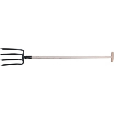 Rycí vidle s násadou "T" 90 cm, 4 hroty Délka násady: 90 cm Materiál násady: dřevo "T" násada Materiál čepele: kov Počet hrotů: 4 Barva: černá