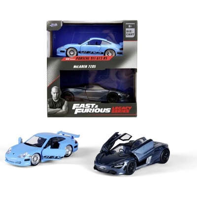 Kovové modely aut z filmu Rychle a zběsile ve dvojbalení - Brianovo Porsche 996 GT3 RS a Shaw´s McLaren 720S, volnoběh, otevírací dveře, měřítko 1:32, velikost 19 cm. Wave 1/2....