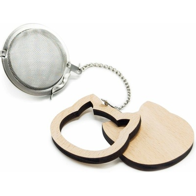 ChaCult kočka čajové sítko nerezové s dřevěným přívěskem 5 cm
