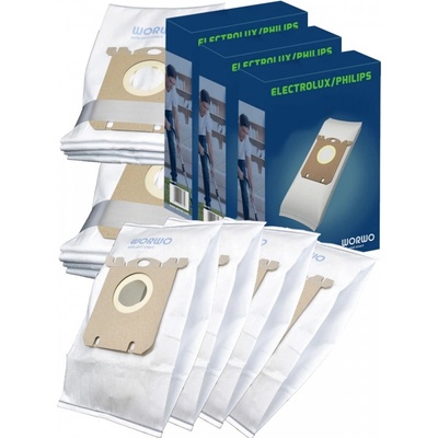 Sáčky ELMB01X12K WORWO pro vysavač Značení WORWO ELMB01K S-Bag XL sada 12ksSáčky WORWO ELMB01X12K Perfect Bag textilní 12ks pro vysavače AEG, ELECTROLUX, Philips v jednom balení...