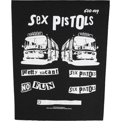 nášivka RAZAMATAZ Sex Pistols Pretty Vacant velká zádová nášivka s potiskem. Rozměry cca.: šířka ve spodní užší částí je 26,5cm, šířka v horní částí nášivky je 30cm, výška...