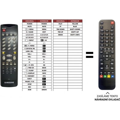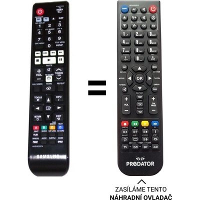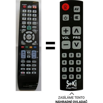 Náhradní dálkový ovladač jiného vzhledu, ale stejných funkcí jako originální ovladač. Nevyžaduje žádné programování. Nahrazuje ovladač AA59-00104A, AA59-00104N, AA59-00104K...