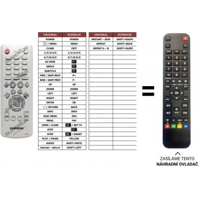 Náhradní dálkový ovladač SAMSUNG AK59-00053H (AK5900053H) - 100% náhrada 1:1 za originální dálkový ovladač. Dálkový ovladač je určen pro tyto modely SAMSUNG:DVD-HR730,...