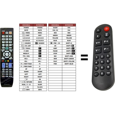 POUZE ZÁKLADNÍ FUNKCE. Samsung náhradní dálkový ovladač. BEZ ZADÁVÁNÍ KÓDŮ