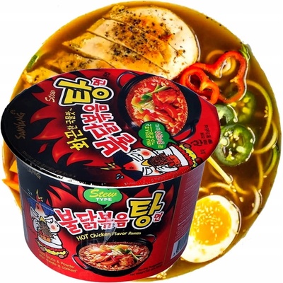 Samyang Hot Chicken Flavor Ramen Stew Type 145g Pšeničné nudle s příchutí kuřecího ramenu typu 'stew', neboli ragú, hotové už za pět minut! Složení: Nudle (67%): -...