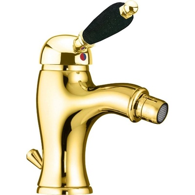 KIRKÉ BLACK stojánková bidetová baterie s výpustí, černá páčka, zlato