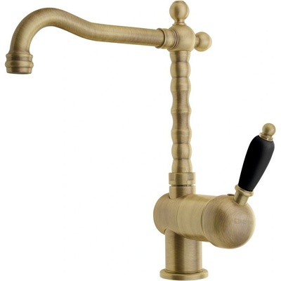 Kuchyňská stojánková baterie barva: bronz materiál: mosaz pákové ovládání černá ovládací páka otočný výtok výška baterie: 303 mm průměr kartuše: 42 mm připojení G 1/2" retro styl