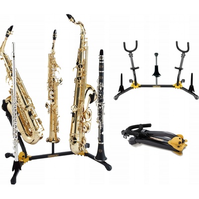 stojan na dechy největší ze stojanů na dechy od Herculesu. na stojanu najdete prostor pro dva alt/tenor saxofony, dvě flétny/klarinet, a jednen soprán saxofon. ideální pro...