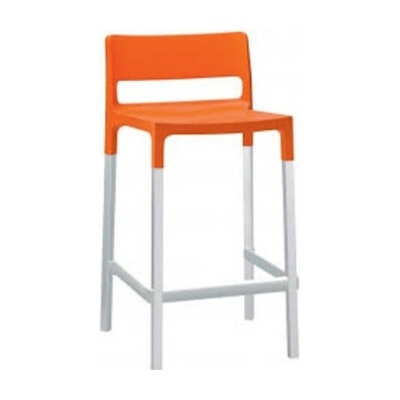 BAR STOOL DIVO je barová židle s podnoží z anodizovaného hliníku, která je vhodná i do exteriéru. Sedák i opěrák jsou plastové z technopolymeru - barva oranžová. Nohy jsou...