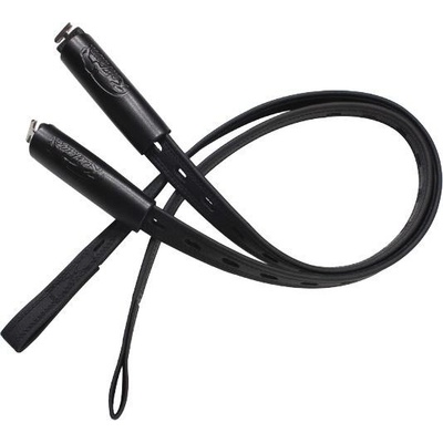 Skokové třmenové řemeny z měkké kůže s nylonovou výztuhou. Konec s nylonovým očkem patří do třmenového zámku, druhý konec s přezkou se zapne pod bočnici na prostřední zápinku...