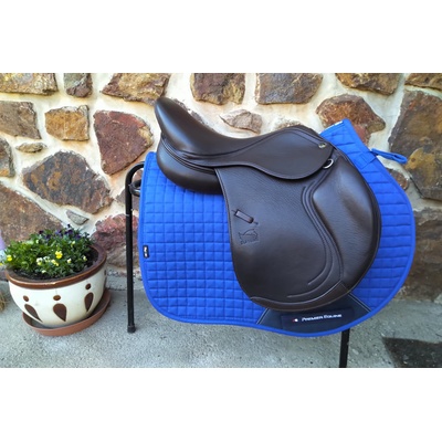 Moderní close-contact model skokového sedla od KenTaur. Kontaktní sedlo na nízkém komfortním pěnovém nebo vyšším vlněném polštáři, se středními stehenními skokovými opěrkami....
