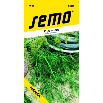 Kopr vonný: HANÁK ** (Anethum graveolens / Kopor voňavý) Výnosná odrůda s jemnou kořenitou chutí a bohatou zelenou hmotou. Rostlina je středně vysoká, v plném růstu 80 - 100 cm, středně olistěná s jasně zeleným listem. Konzumní část je list, který se řeže s celou...
