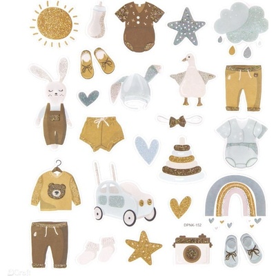 Třpytivé samolepky - Baby Boy budou krásným doplňkem při výrobě karet a scrapbookingu. Skvěle se hodí zejména na dětské projekty, jako jsou přáníčka ke křtu, rok staré nebo jiné...