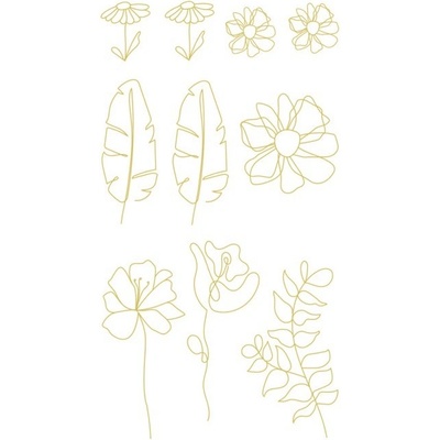 Matné PVC samolepky s průhledným pozadím. Vzor: pozlacené jemné květinové motivy, elegantní a minimalistické Ideální pro zdobení alb, diářů, poznámkových bloků a karet. Jemné...