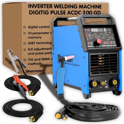 SHERMAN DIGITIG PULSE AC / DC 200GD INVERTOROVÝ SVAŘOVACÍ STROJ | Značka: SHERMAN | Metody svařování: TIG AC, TIG DC, MMA | Napájení: 230V | Svařovací proud: 200A | Účinnost :...