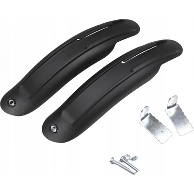- Sada blatníků pro dětská kola - přední a zadní- Určeno pro kola velikostí: 16"- Šířka: 66 mm- Délka: 305 mm - přední/ 400 mm zadní- Materiál: plast- Hmotnost: 175g- Upínání: kovové úchyty- Spojovací materiál: přiložen- Barva: černá