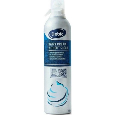 Debic Šlehaná neslazená smetana 35% 700 ml Šlehaná šlehačka připravená k použití ve spreji nejvyšší možné kvality. Bez přísad, neslazená. Profesionální aplikátor usnadní dávkování na dezertech, kávě nebo horkých pokrmech a speciálně vyvinuté složení hnacího plynu...