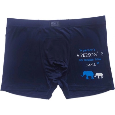 Pánské boxerky Pesail jsou vyrobeny z 95 % bambusového vlákna a 5 % elastanu. Jsou jednobarevné na nohavičce potisk sloni a nápis „A person's a person no matter how small“. Trenkoslipy jsou pohodlné a prodyšné, antibakteriální a hypoalergenní díky čemuž jsou ideální...