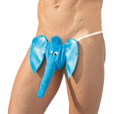 Modré saténové tanga se vzhledem modrého slona i s chobotem. Materiál: 100% polyester. Velikost: S-L.