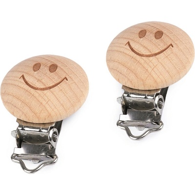 Kovový klip s dřevěnou ozdobou je vhodný na jmenovky, kdy jeho průvlekem provlečete stuhu nebo šňůrku. Zoubky uvnitř zabraňují klouzání. Průměr ozdoby je 30 mm.