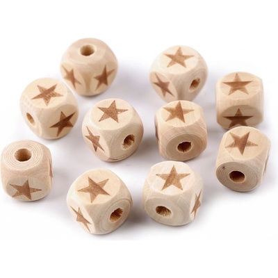 Přírodní dřevěné korálky ve tvaru oblé kostky jsou kvalitní, mají hezké opracování. Ze všech stran mají laserem vygravírovaný motiv. Hodí se na výrobu nejen dětských...