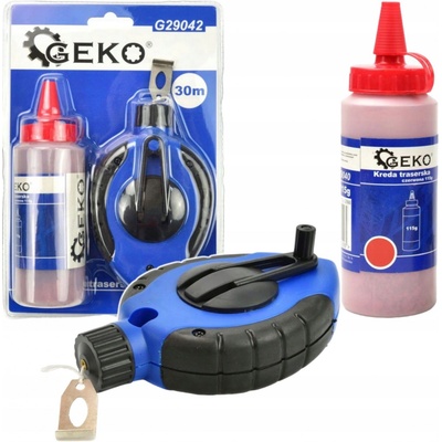 Značkovací provázek – pásmo na vyznačení trasy, tzv. brnkačka, délka 30 metrů, sada s červenou křídou v lahvičce – GEKO G29042 Souprava na rychlé a jednoduché vyznačení...