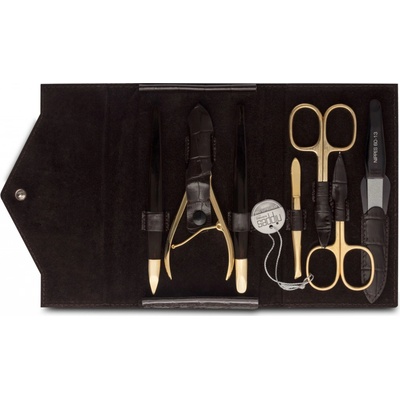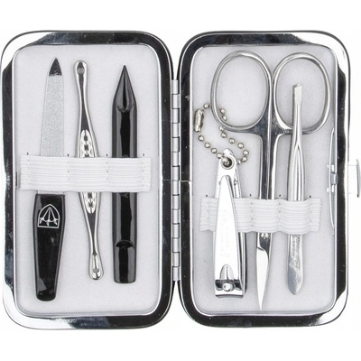 Středně velká luxusní černobílá dámská manikúra, která má 8 dílů, od tradičního českého výrobce, dodávaná v koženém pouzdře, které se uzavírá na zip. Manikúra obsahuje...