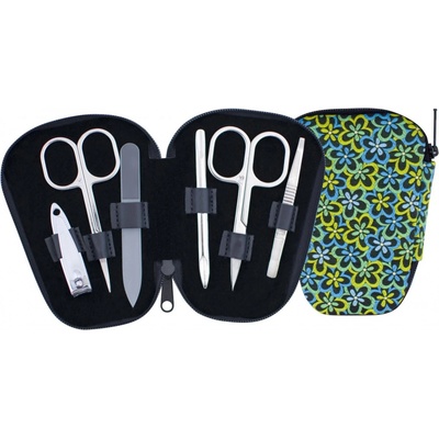 Dámská a dívčí manikúra ROZÁLIE 230402-443 Dámský a dívčí manikúrní set 6-dílný, je vyrobený z textilní koženky s květinovým vzorkem, poutka jsou z kůže. Pouzdro se uzavírá na...