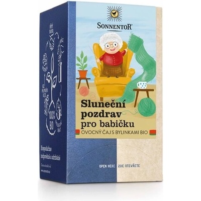 Sonnentor Sluneční pozdrav pro babičku ovocný čaj s bylinkami porcovaný BIO 45 g. Kdo by rád nezavzpomínal na bezvadné prázdniny u prarodičů? Hravý děda se spoustou nápadů a triků v rukávu, hodná babička s těmi nejlepšími buchtami a koláči na světě. Mít někoho, kdo si...