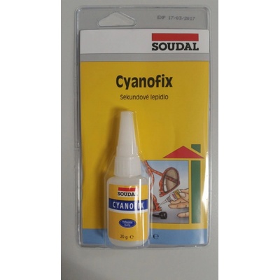 Soudal Cyanofix 84A vteřinové lepidlo, 20 g Vteřinové lepidlo, silná přilnavost, rychleschnoucí. Lepí většinu hladkých materiálů, běžné rychlé opravy, vhodné na porcelán, sklo, gumu, kovy, většinu plastů, atd., nepoužívat na PE, PP, PTFE.