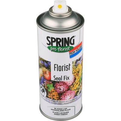 Lesklý bezbarvý lak ve spreji „SPRING Florist Seal Fix“. Vhodný především k prodloužení trvanlivosti řezaných květin a zlepšující vzhled květin živých, sušených, umělých, hedvábných a dekorací z nich. Po nastříkání na živou květinu dojde k fixaci květiny, sníží se její...