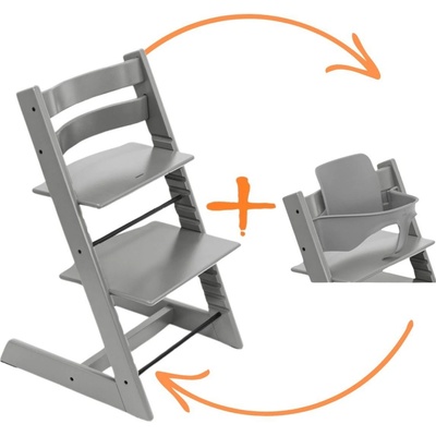 STOKKE Tripp Trapp bundle židlička a baby set Storm Grey --> Židlička, která roste s Vaším děťátkem nyní v sadě s Baby Setem a putíkem! Ideální sada pro start do zábavného stolování a ergonomického sezení! Židlička Stokke Tripp Trapp je vyrobená z pružného bukového...